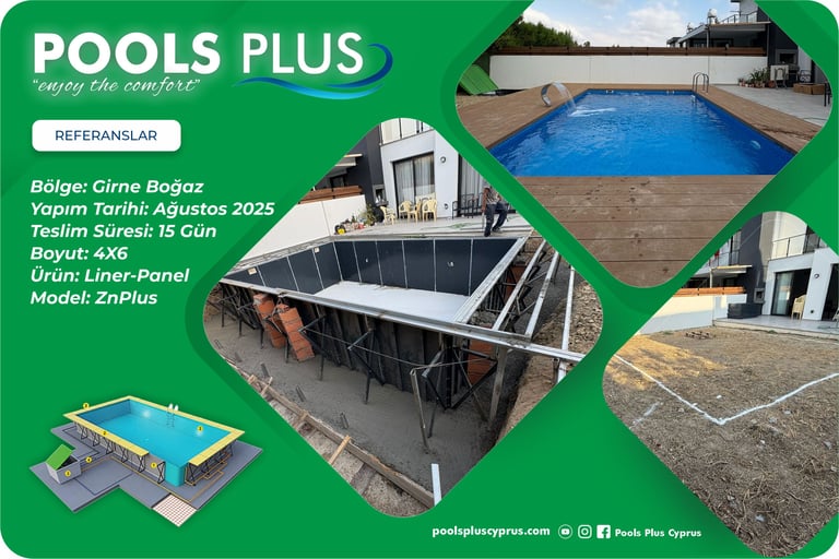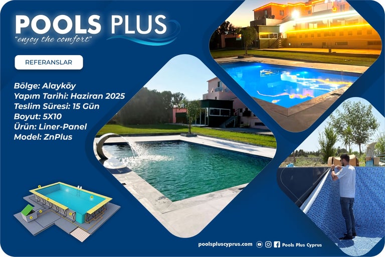 Çelik panel liner havuzlar, hızlı kurulum süreci ve güçlü yalıtım avantajını bir araya getirerek Kıbrıs iklim ve zemin koşullarında en pratik havuz çözümlerinden biri olarak öne çıkar. Klasik betonarme havuzlara kıyasla çok daha kısa sürede tamamlanır ve kontrollü bir kurulum süreci sunar.